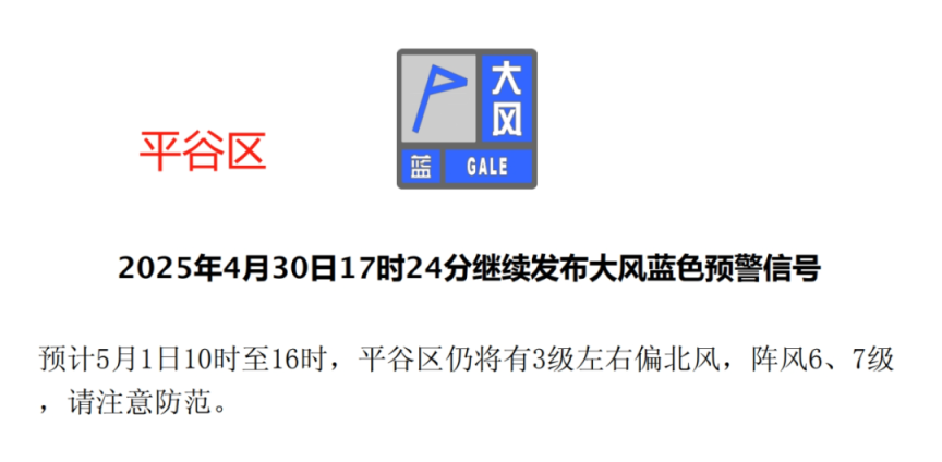 延庆区、门头沟区、平谷区继续发布大风蓝色预警信号,分区预警请关注。